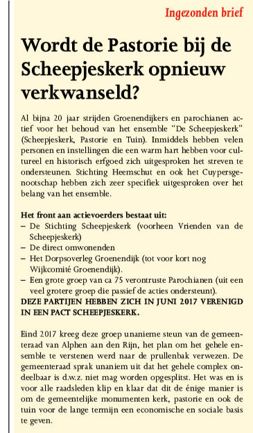 Vorige week stond er een ingezonden brief over de situatie rond het ensemble Scheepjeskerk in de Groene Hart